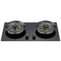2 burner glass gas hob with 5.2kW power, windproof support and tempered glass. Ideal for OEM brands and distributors.